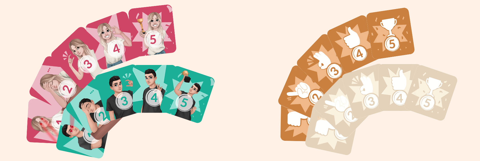 • 72 karty wyzwań w pakiecie podstawowym – 6 kategorii; po 12 kart na kategorię:
